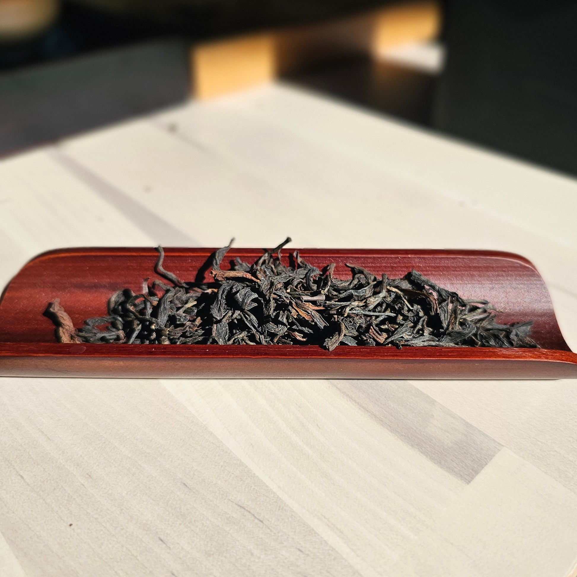 Inspired by the pinewood-smoked red tea from China known as Lapsang Souchong or Zhèng Shān Xiǎo Zhǒng, Alexander Kay smokes handpicked tea over guava wood after having fully oxidized the leaves. Kay is the leader of the Satemwa Estate, a Fair-Trade certified grower of tea that is dedicated to improving the living conditions of their community, including the maintenance of 5 community clinics and an ambulance.